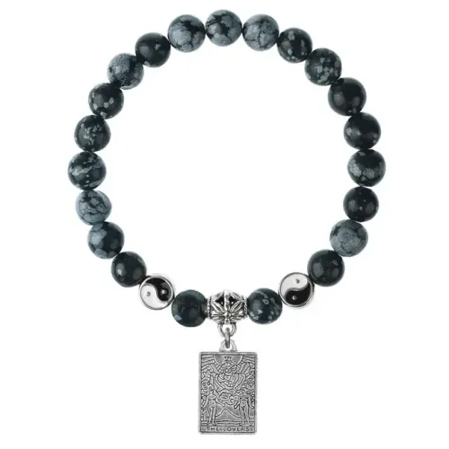 Браслет Таро - Любовники, Снежный обсидиан 8мм BSP1-17-3024
