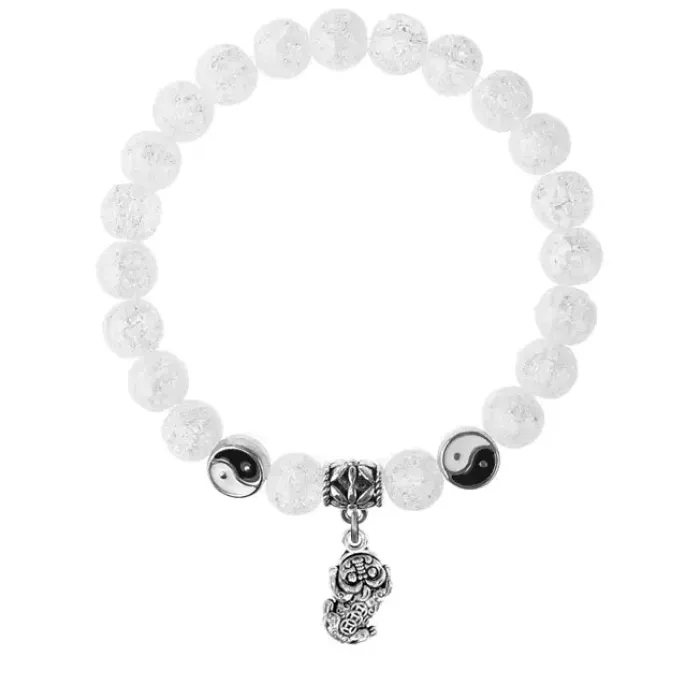 Браслет-амулет из синтетического сахарного кварца с подвеской Пи Яо из бижутерного сплава.