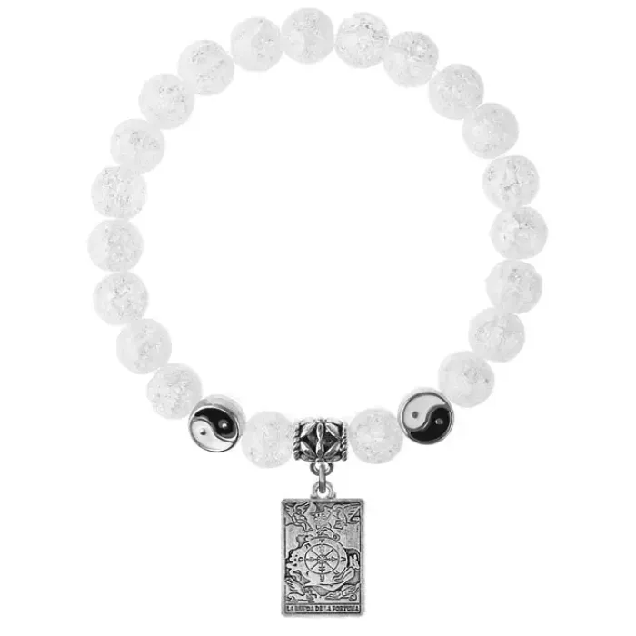 Браслет-амулет из синтетического сахарного кварца с подвеской в виде колеса фортуны из бижутерного сплава.