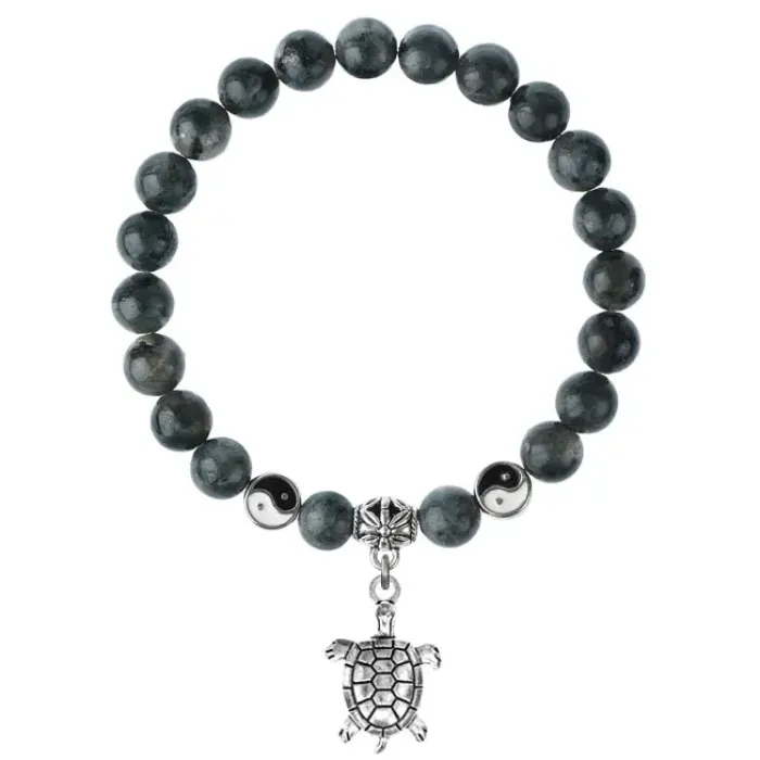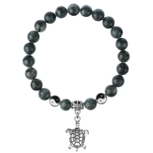 Браслет-амулет из натурального камня лабрадор с подвеской в виде черепахи.