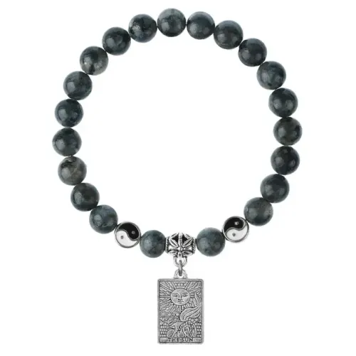 Браслет из натурального камня лабрадор с подвеской в виде символа карты Таро «Солнце».