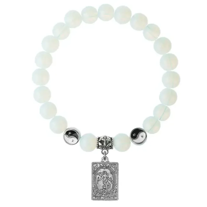 Браслет-амулет из синтетического лунного камня (Опалит) с подвеской-талисманом в виде аркана Таро.