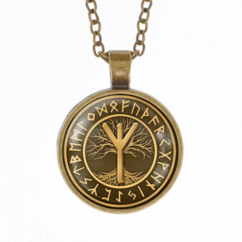 Кулон-амулет с руной Альгиз, олицетворяющей защиту и духовную силу. Выполнен с выпуклой стеклянной линзой и покрытием под бронзу, что придаёт изделию уникальный вид. В комплекте идёт цепочка с надёжным замком, обеспечивающая комфортное ношение. Упаковка выполнена в виде прозрачного полипропиленового пакетика без подвеса, что делает его удобным для хранения или подарка. Руна Альгиз традиционно ценится за связь с высшими силами и интуицию, что добавляет особую энергетику этому амулету.