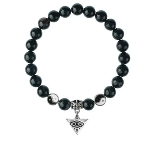 Браслет-амулет из натурального чёрного агата с подвеской в виде глаза.