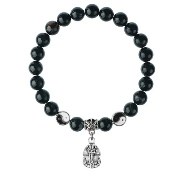 Браслет Фараон (благополучие, процветание), Черный агат 8мм BSP1-22-3015