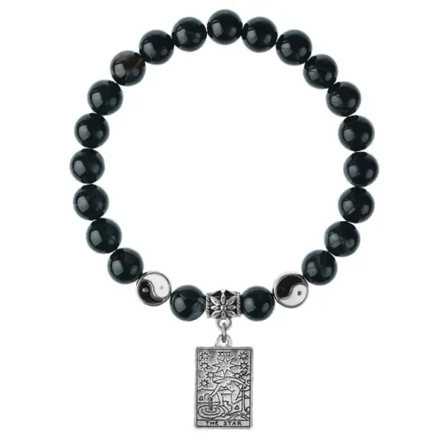 Браслет Таро - Звезда, Черный агат 8мм BSP1-22-3021