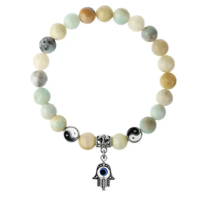 Браслет-амулет Хамса из натурального амазонита с подвеской из бижутерного сплава.