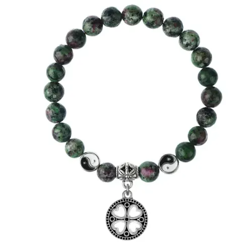Браслет из синтетического цоизита с подвеской в виде клевера.