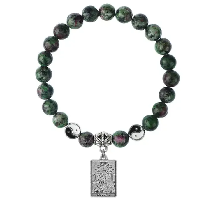 Браслет из синтетического цоизита с подвеской-талисманом в виде карты Таро «Луна».
