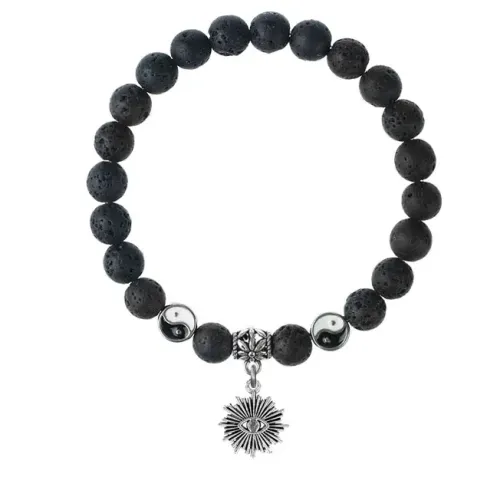 Браслет-амулет из натурального камня лава с подвеской-талисманом.