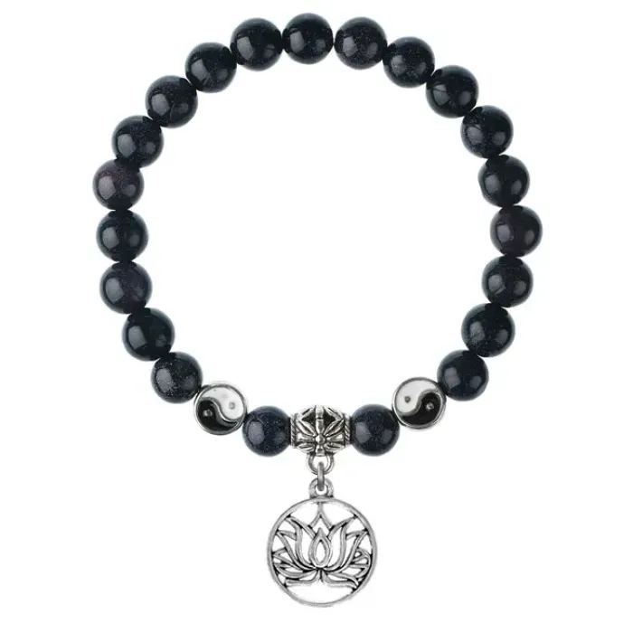 Браслет из синтетического синего авантюрина с подвеской в виде лотоса.