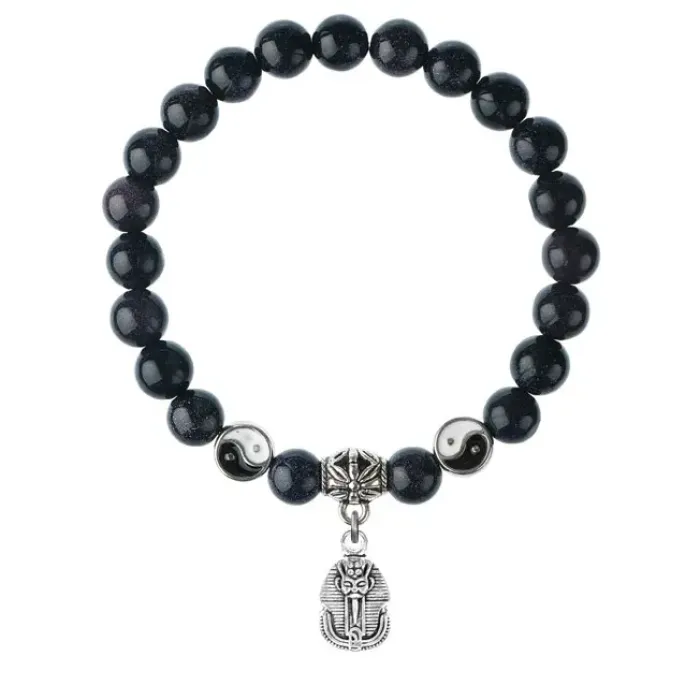 Браслет из синтетического синего авантюрина с подвеской-талисманом в виде фараона.
