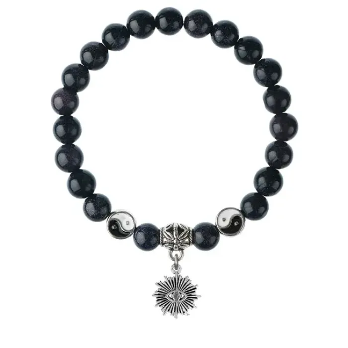 Браслет-амулет из синего авантюрина с подвеской-талисманом из бижутерного сплава.
