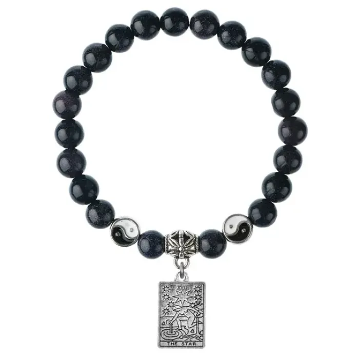 Браслет из синтетического синего авантюрина с подвеской-талисманом в виде звезды Таро.