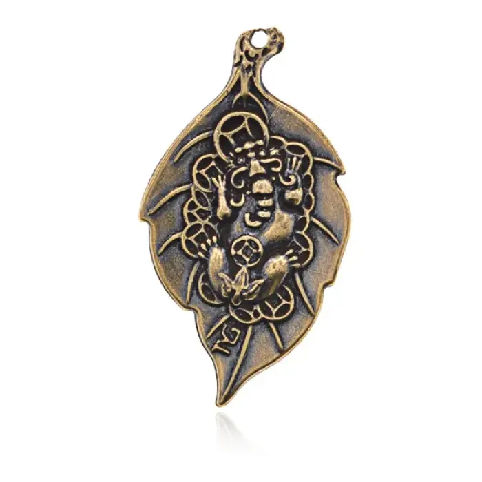 Бронзовый кулон «Лист и Пи Щу» с дизайном, сочетающим природные и традиционные мотивы.