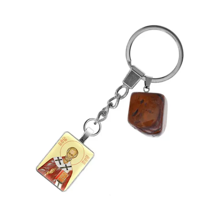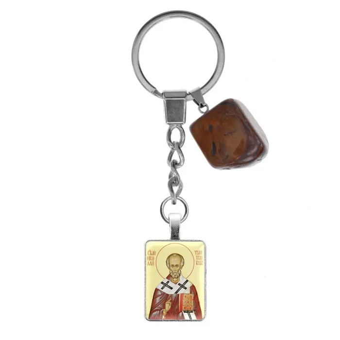 Брелок из нержавеющей стали с изображением Святого Николая Чудотворца и натуральным камнем Тигровый глаз — это не просто аксессуар, а символ защиты и помощи в трудные времена. Святой Николай известен как покровитель путешествующих, детей и тех, кто нуждается в поддержке. Он помогает преодолевать бедствия на пути, исцелять недуги и защищает от неправедных судов.