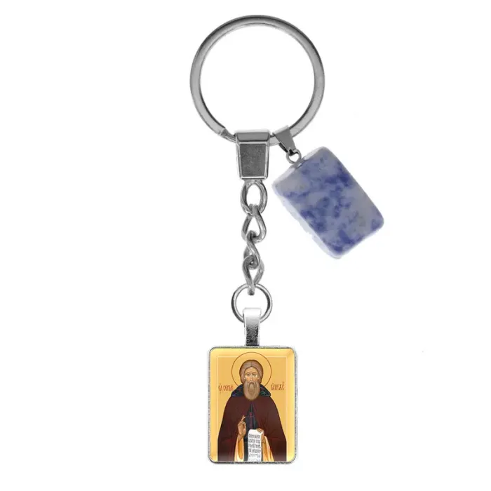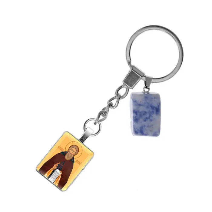 Брелок из нержавеющей стали Св. прп. Сергей Радонежский с натуральным камнем Содалит BKM-ALE305