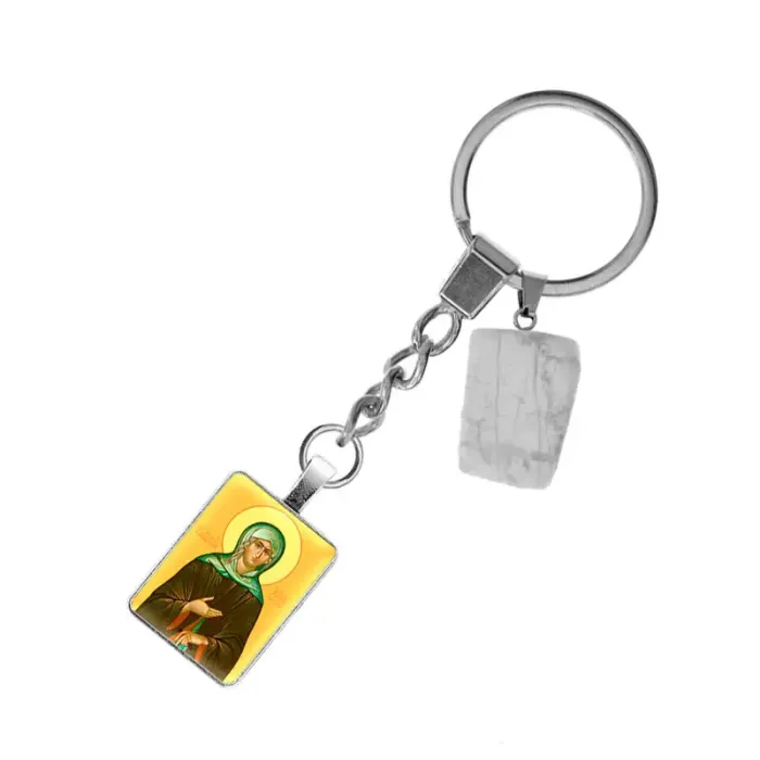 Брелок из нержавеющей стали с изображением святой блаженной Ксении Петербургской и натуральным камнем Калохонг — это не только стильный аксессуар, но и символ защиты и благополучия. Блаженной Ксении молятся о мире в семье, здоровье детей и защите от негативной энергии, что делает этот брелок особенно ценным для каждого его обладателя.