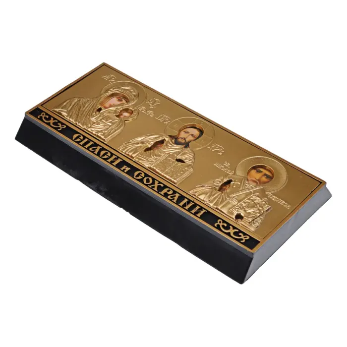 Триптих для авто «Спаси и сохрани» — это стильный аксессуар, который не только украсит интерьер автомобиля, но и станет символом защиты в пути. Этот сувенир традиционно используется водителями как оберег. Изготовленный из прочного пластика, он имеет компактные размеры: высота 5,5 см и ширина 10,5 см. Триптих легко крепится в любом месте автомобиля и будет радовать глаз своим дизайном. Такой подарок станет отличным дополнением к любому автомобилю и подчеркнет индивидуальность владельца.