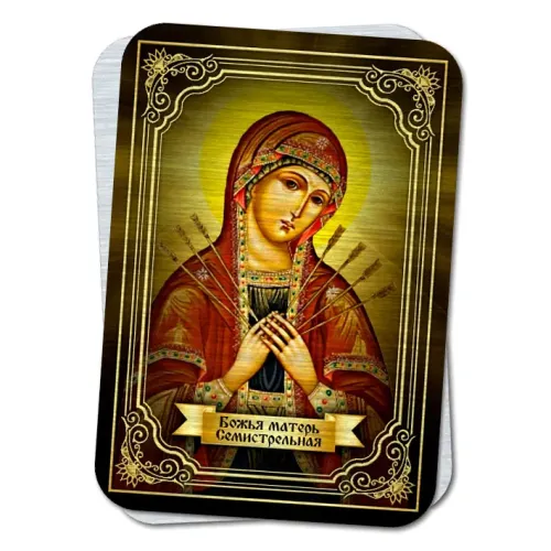 Икона Божья Матерь Семистрельная (Умягчение злых сердец) является символом примирения и утешения. Этот магнит, размером 5,6х8 см, изготовлен из металла толщиной 0,45 мм и упакован в пакетик с описанием. Традиционно считается, что она помогает в умягчении злых сердец и восстановлении мирных отношений между людьми. Икона также ценится за возможность даровать душевное спокойствие в трудные времена и защиту от негативного влияния окружающих. Прекрасный подарок для тех, кто ищет поддержку и гармонию в жизни.