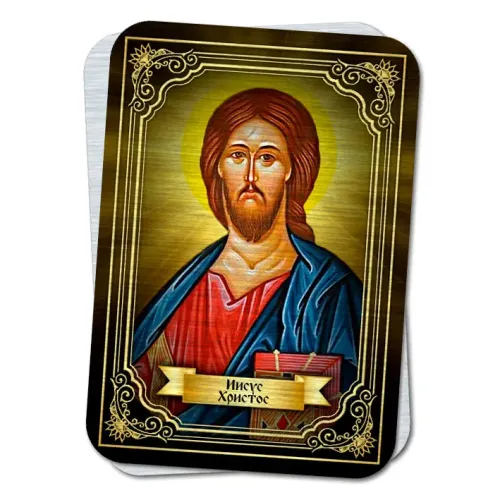 Икона Иисуса Христа из металла для размещения на металлической поверхности.