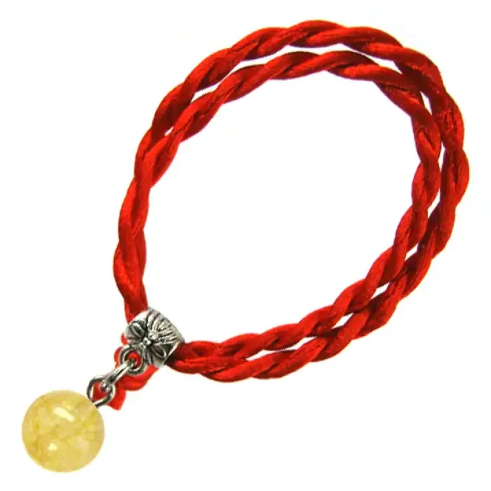 Браслет красный витой с камнем Цитрин 8мм,цвет сереб, металл, текстиль KV38