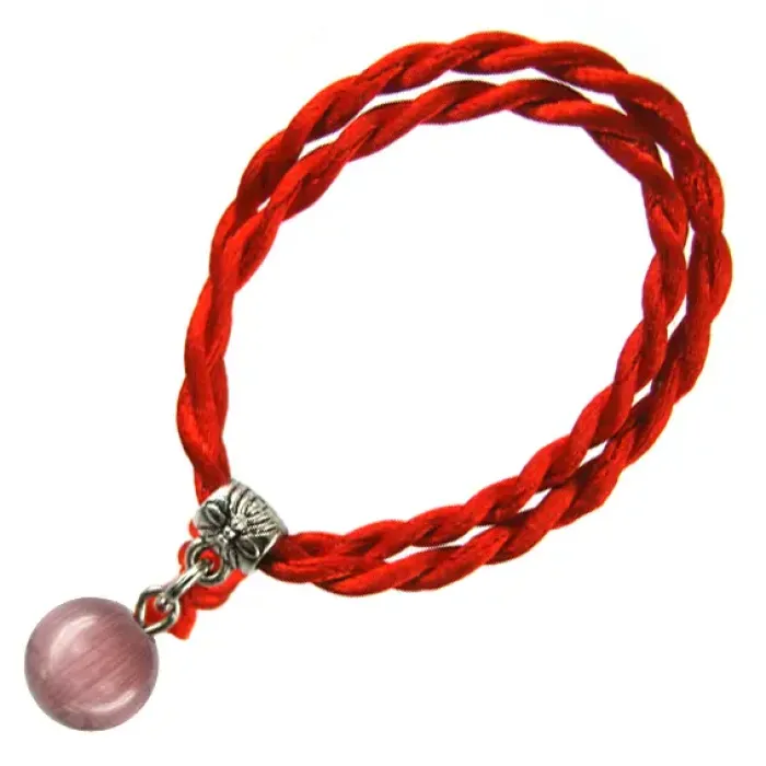 Браслет красный витой с камнем Koшaчий глaз (фиолетовый) 8мм,цвет сереб, металл, текстиль KV44