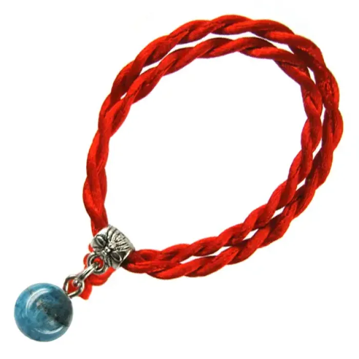 Браслет красный витой с камнем Хризоколла 8мм,цвет сереб, металл, текстиль KV66