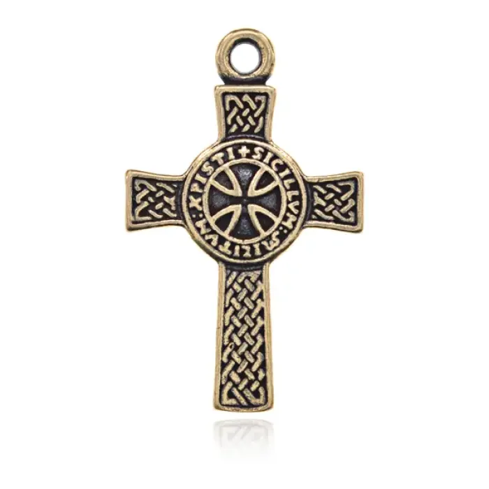 Кулон в форме креста, выполненный из бронзы. Размеры изделия 4х2,5 см.
