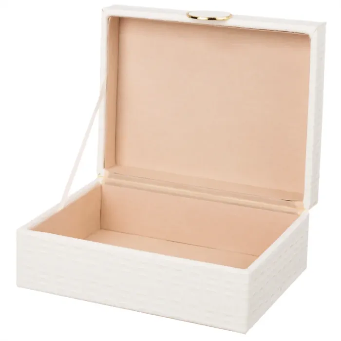 Эта шкатулка сочетает в себе практичность и элегантность, благодаря чему легко вписывается в интерьер любой комнаты. Материалы изготовления — МДФ и экокожа — обеспечивают прочность конструкции, а также придают изделию современный вид. Внутреннее пространство позволяет организовать хранение аксессуаров максимально удобно.