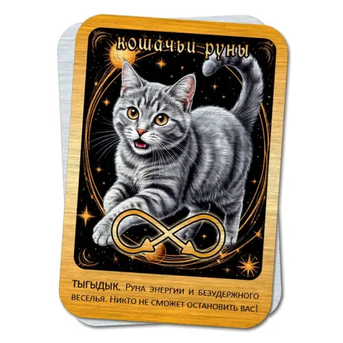 Магическая карта Кошачьи руны — это уникальный сувенир, символизирующий энергию и безудержное веселье. Эта руна традиционно используется для привлечения позитивной энергии и создания радостной атмосферы.