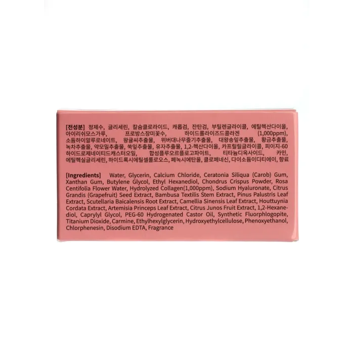 Состав: Water, Glycerin, Calcium Chloride, Ceratonia Siliqua (Carob) Gum, Xanthan Gum, Butylene Glycol, Ethyl Hexanediol, Chondrus Crispus Powder, Rosa Centifolia Flower Water, Hydrolyzed Collagen(1,000ppm), Sodium Hyaluronate.