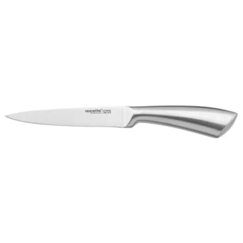Универсальный нож Киото от TM Appetite предназначен для выполнения различных кухонных задач, таких как нарезка овощей и фруктов. Инструмент изготовлен из нержавеющей стали, что обеспечивает коррозионную стойкость и долговечность.
