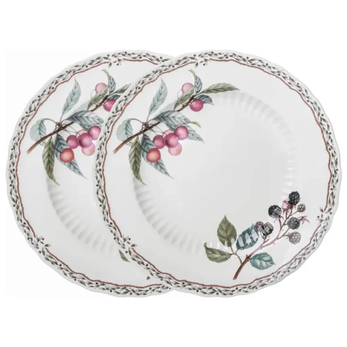 Набор из двух обеденных тарелок предназначен для сервировки вторых блюд. Изделия выполнены из тонкостенного фарфора бренда Lefard и относятся к коллекции Fruit Garden, отличительной чертой которой является декоративное оформление.