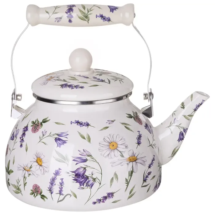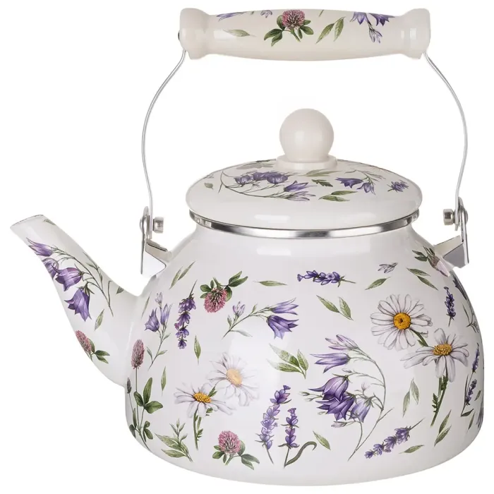 Эмалированный чайник Agness из серии Flower Story предназначен для кипячения воды на газовых, электрических и индукционных плитах. Модель объёмом 2,6 литра рассчитана на использование в быту. Основными преимуществами являются эмалированная сталь в качестве материала и технология тройного обжига.