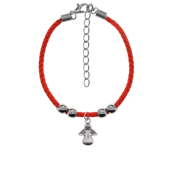 Браслет из красного шнура с подвеской в виде ангела, выполненной из бижутерного сплава с покрытием под серебро. Этот аксессуар не только привлекает внимание, но и несёт в себе глубокий символический смысл. Он традиционно используется как амулет для привлечения удачи и защиты от негативных воздействий.