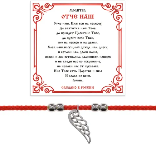 Браслет из красного шнура с подвеской в виде крыла ангела, выполненной из бижутерного сплава с покрытием под серебро. Этот аксессуар не только украшает, но и символизирует защиту и удачу. Длина браслета составляет 22 см, а размеры коннектора — 2,5х1 см. Толщина шнура — 3 мм, что обеспечивает комфорт при ношении. Браслет регулируется по обхвату запястья для идеальной посадки. Упакован в прозрачный пакет с подвесом, комплект дополнен вкладышем. В народной традиции красная нить считается амулетом, который помогает защититься от негативных энергий и привлечь удачу.