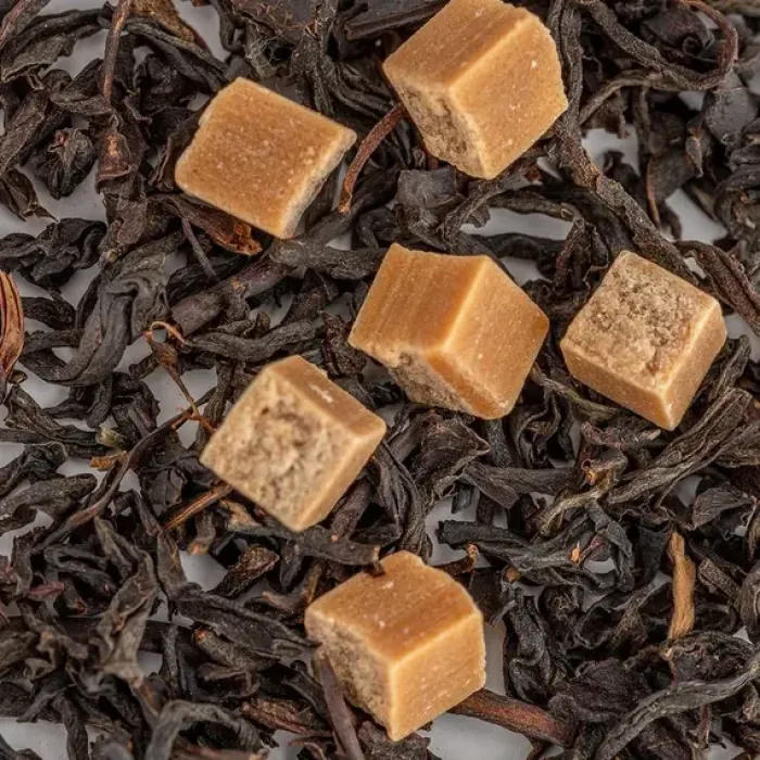 Состав: Чёрный индийский чай, кусочки карамели, ароматизатор «Английская карамель».