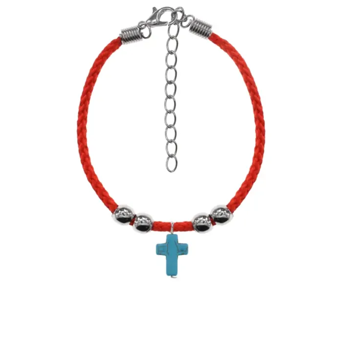 Браслет с подвеской Крест, бирюза KB2-011
