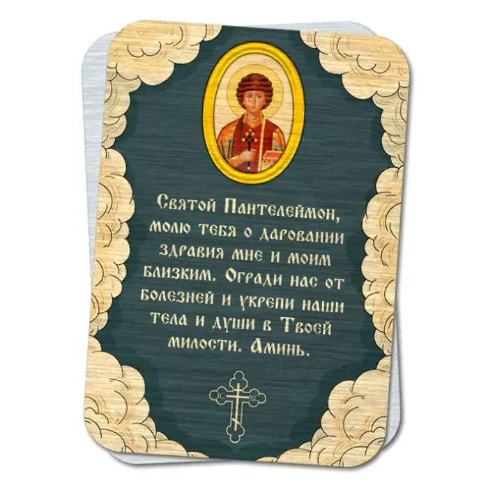 Металлическая карта с молитвой Прошение Святому Пантелеймону о здравии YAN795