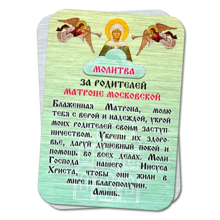 Металлическая карта с молитвой За родителей Святой Матроне YAN811