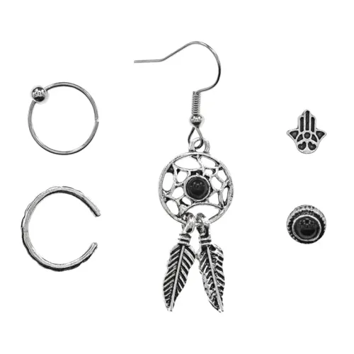 Набор украшений из металла с серебристым покрытием, включающий серьги разных типов крепления.