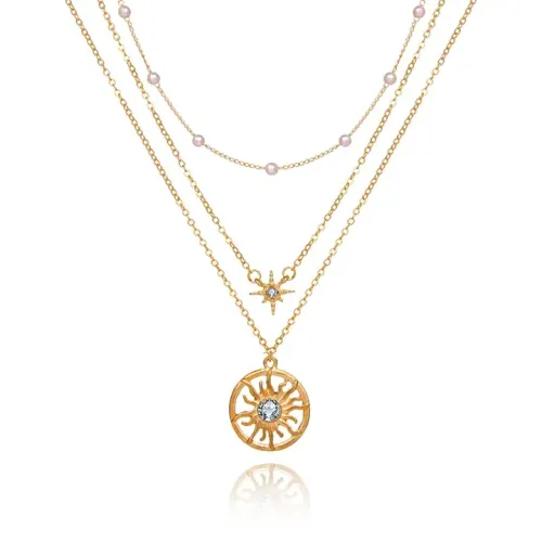 Набор из 3 кулонов Солнце и звезда с жемчугом, цвет золотой BJK303