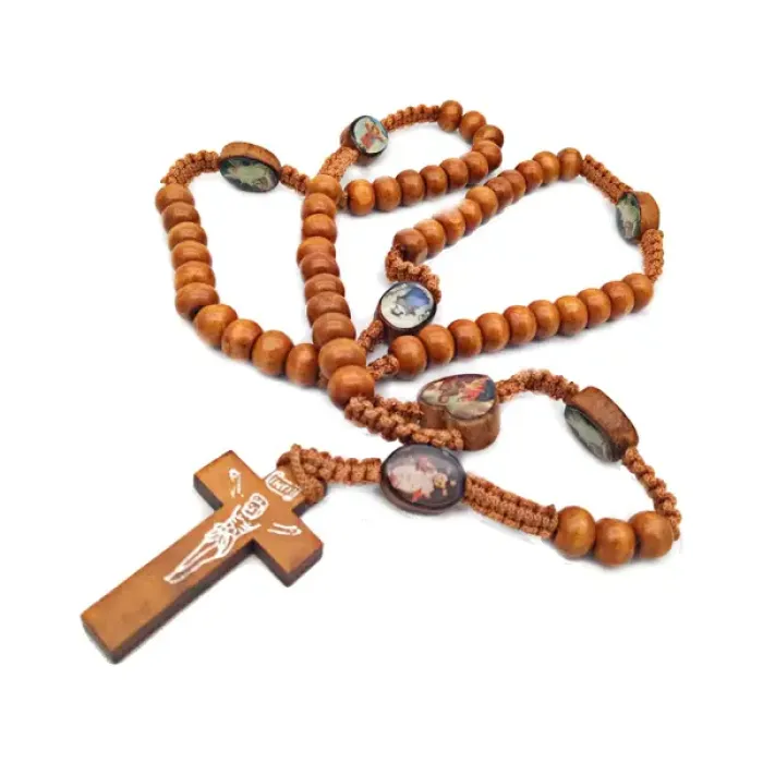 Христианские четки 8мм с плетеным шнуром, дерево, цвет светло-коричневый CH027-3