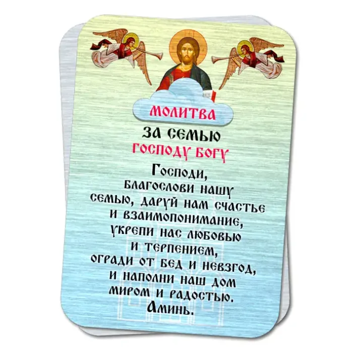 Металлический магнит с молитвой За семью Господу Богу M-YAN807