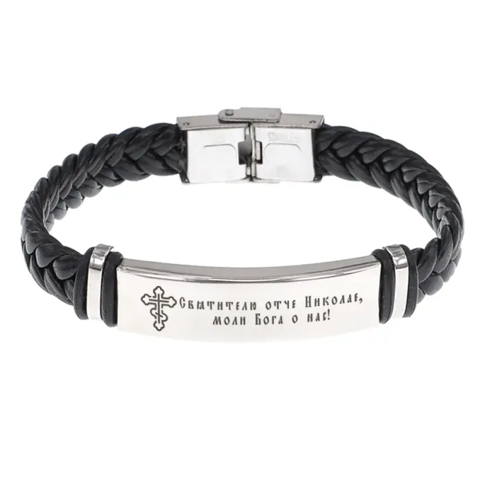 Кожаный браслет Молитва Николаю Чудотворцу BSKR1-602