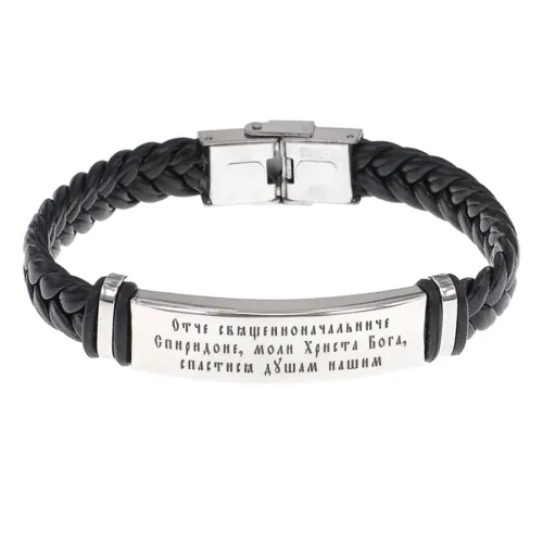 Кожаный браслет Молитва Святителю Спиридону BSKR1-608