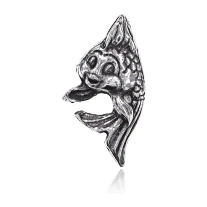 Кошельковый сувенир в виде рыбки из металла с серебряным покрытием.
