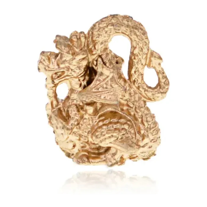Кошельковый сувенир в виде дракона, выполненный из металла с золотым покрытием.