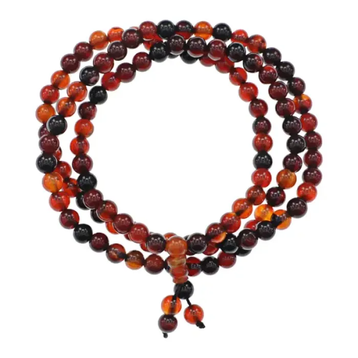 Чётки для медитации из натурального агата с 108 бусинами и гуру-бусиной.
